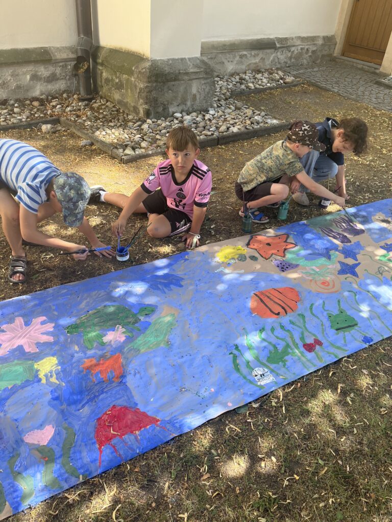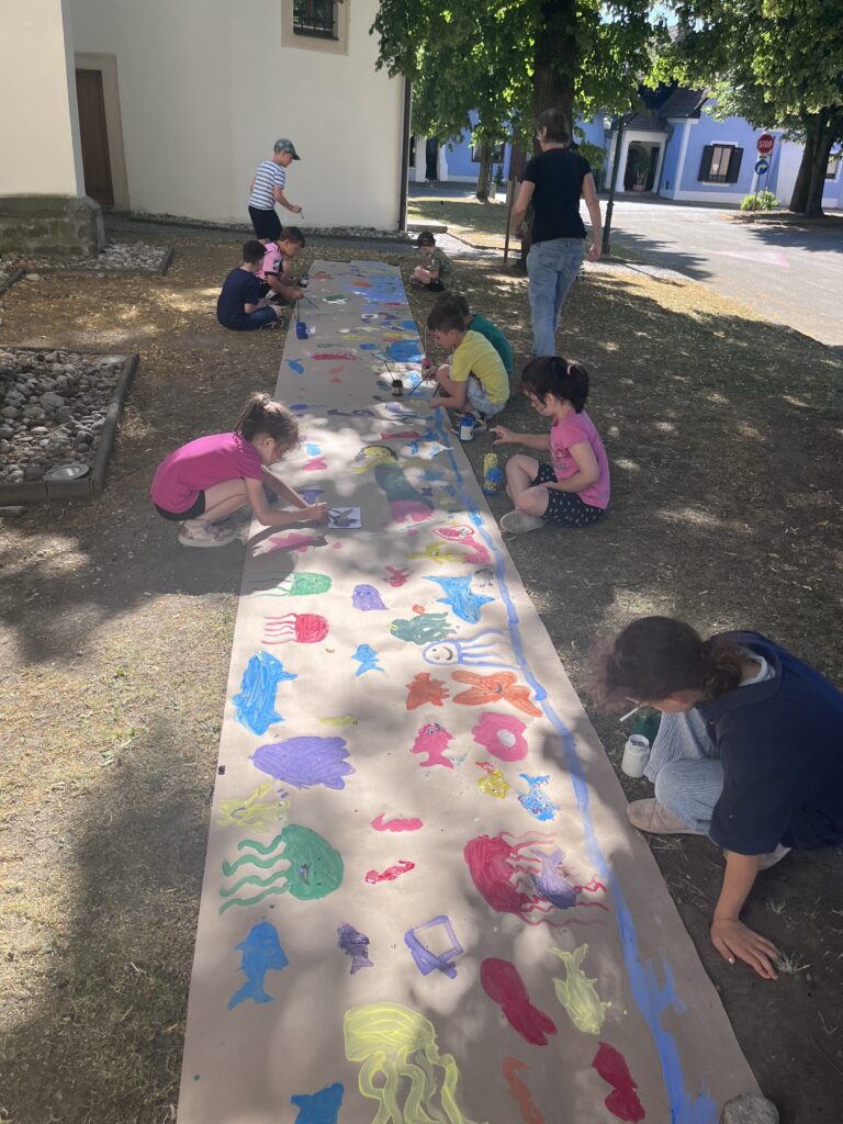 Am 25.5.2025 bekam die 1a Besuch von Marvins Mama und Oma. Die Kinder durften in zwei Gruppen mit unserer Leseoma an einem Unterwasserbild gemeinsam malen und mit Mama Sarah neue Tänze einstudieren. Alle Kinder waren an diesem heißen Vormittag mit großer Freude und Eifer bei der Sache. Danke an Karin und Sarah für diesen abwechslungsreichen Vormittag!