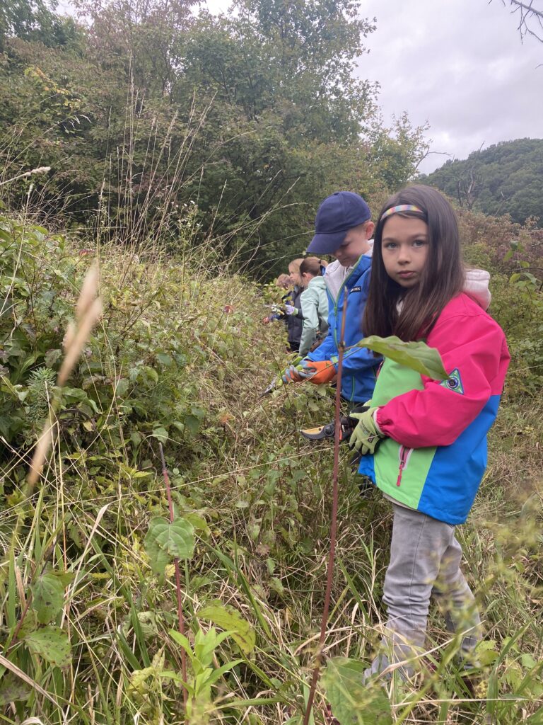 Am 23.9.2025 fuhren die 3. Klassen nach Wolfpassing. Dort angekommen, trafen sie auf zwei Damen vom Biosphärenpark Wienerwald. Nach einer kleinen Wanderung (inklusive interessanter Infos zu einer Blindschleiche) ging es durch dichtes Gestrüpp zu einem alten Weingarten. Die Kinder starteten, nach einer kleinen Einführung, mit der Freilegung der Mauern. Die wuchernden Sträucher wurden eifrig geschnitten und entsorgt. Allen Kindern machte das Arbeiten großen Spaß! Als Dankeschön für den Einsatz bekamen die beiden Klassen sogar Urkunden verliehen.